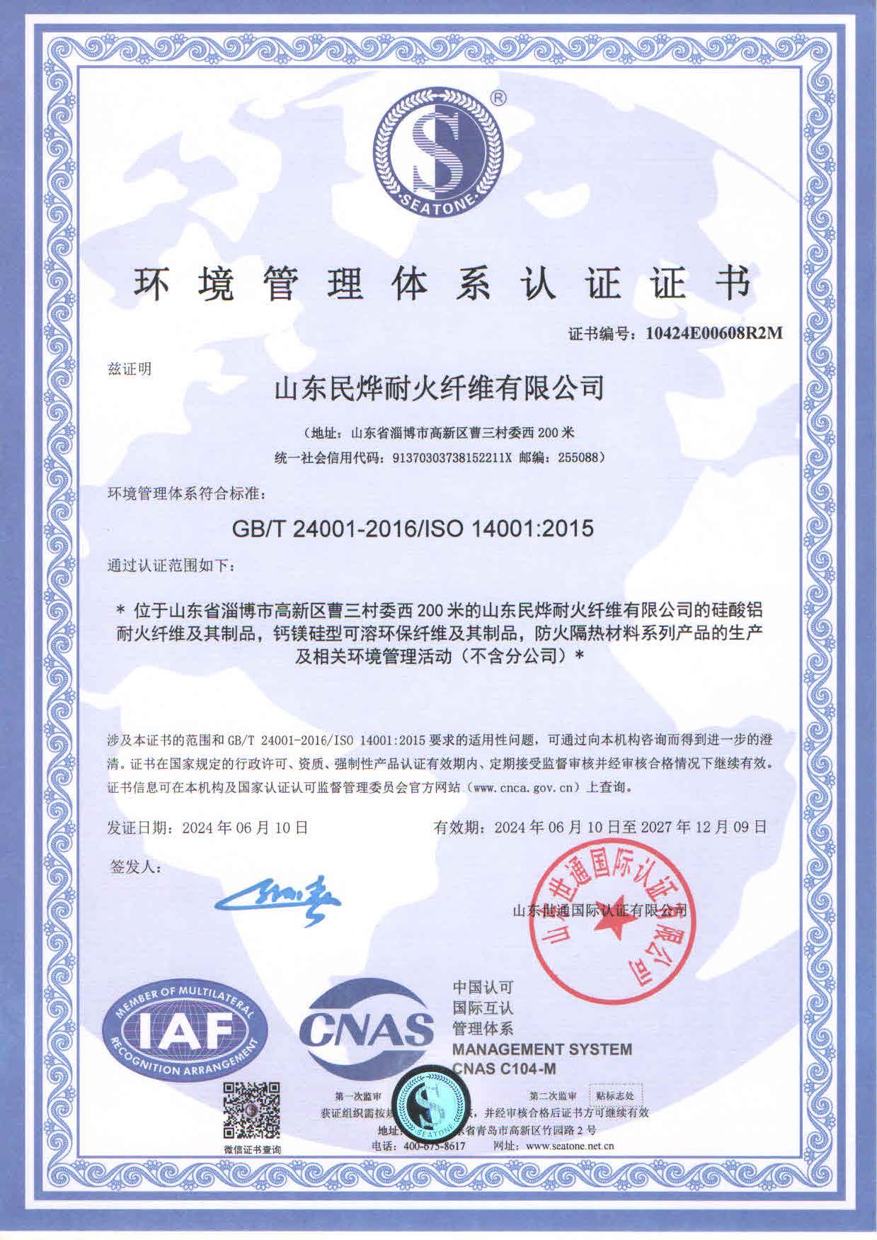 • 2024年環(huán)境體系認證證書